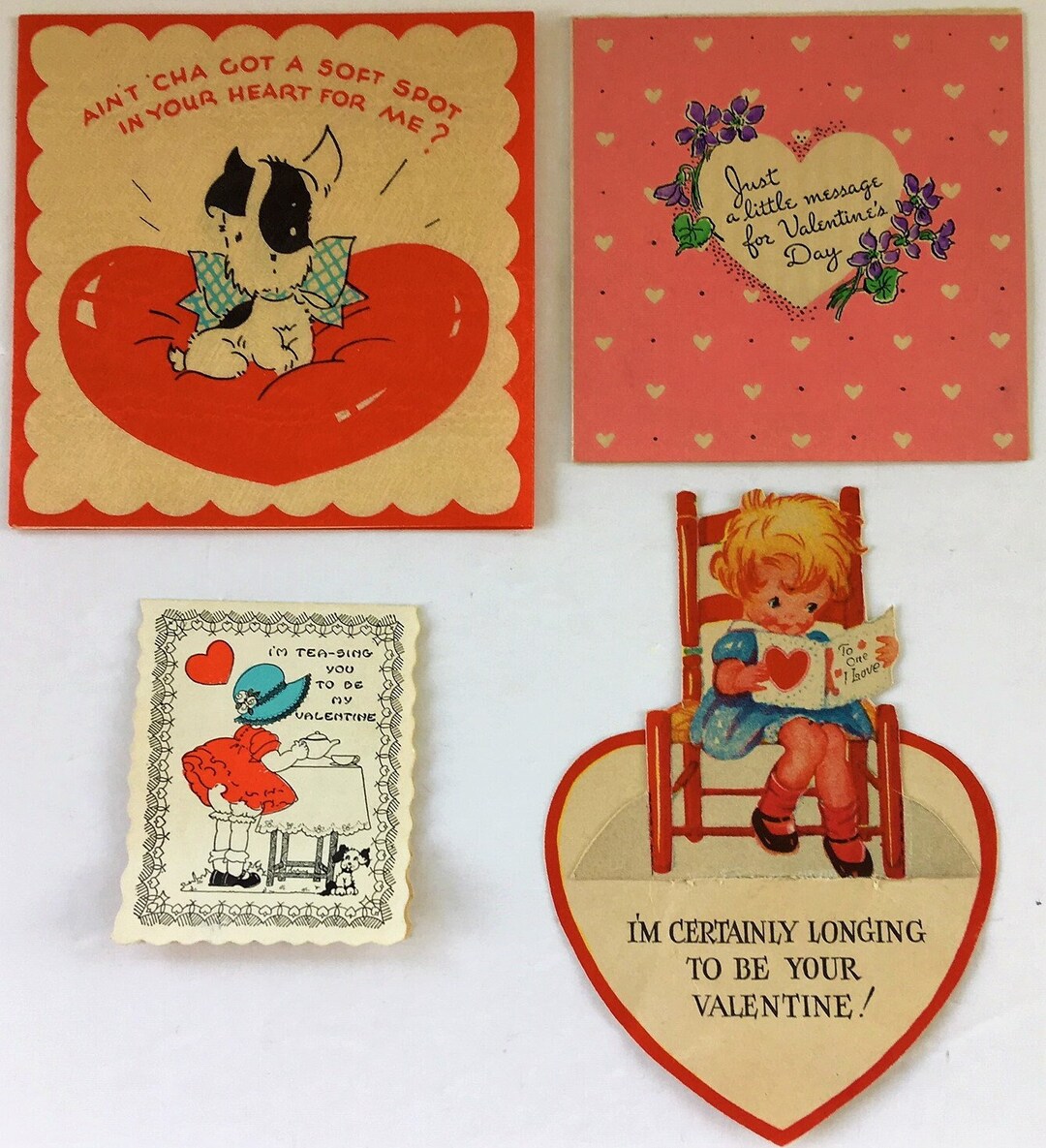 Vintage Valentine Day Greeting Cards Lot of 4 From 1930 #39 s Norcross