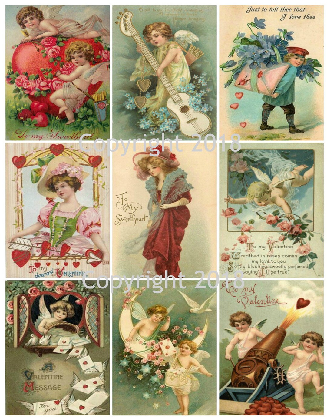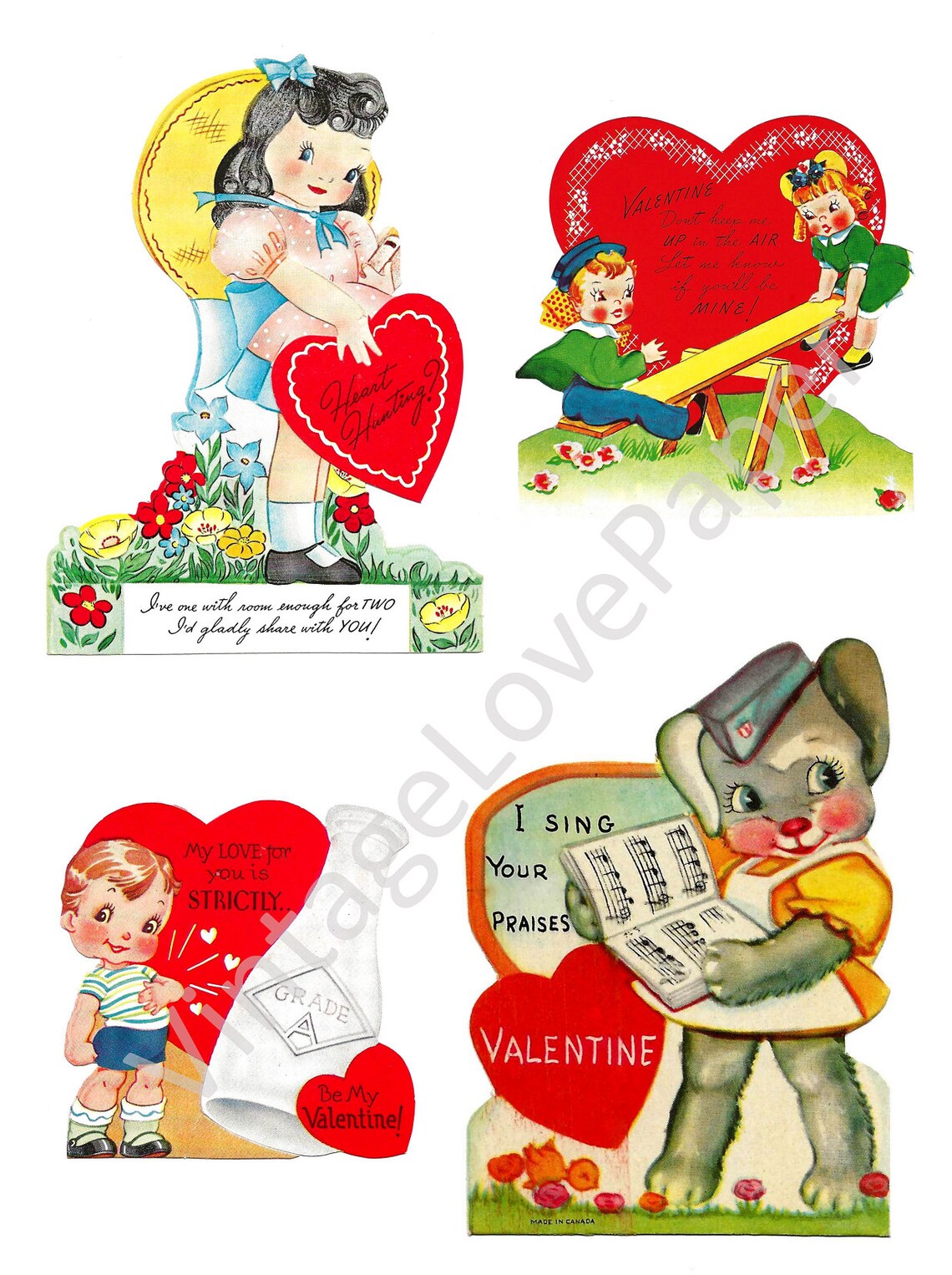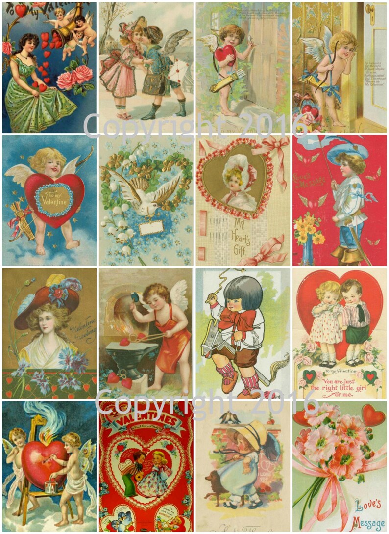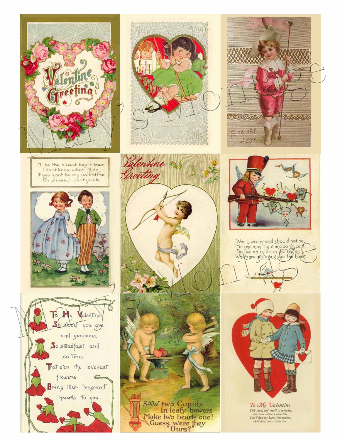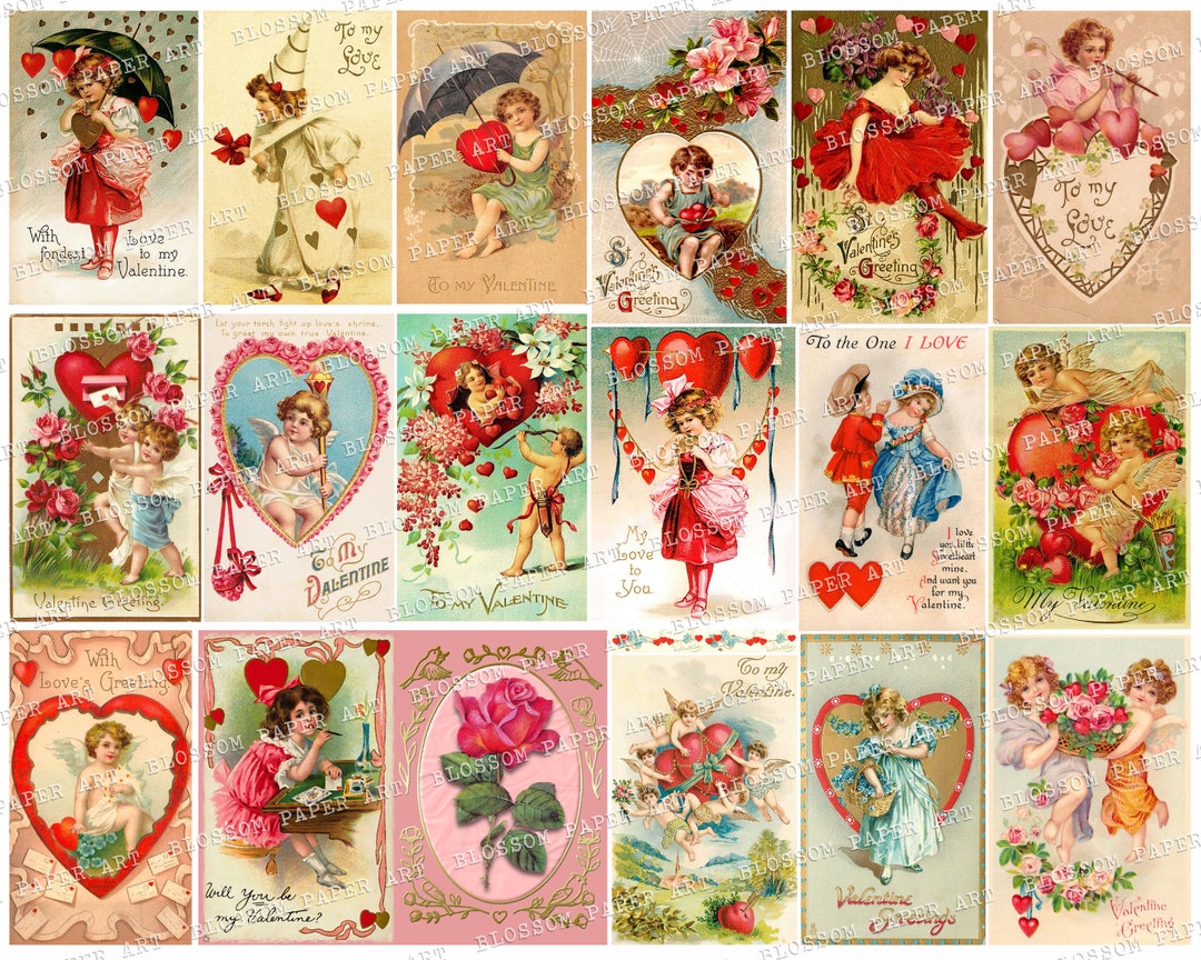 Vintage Valentine Cards Printable Collage Sheet Valentines Etsy