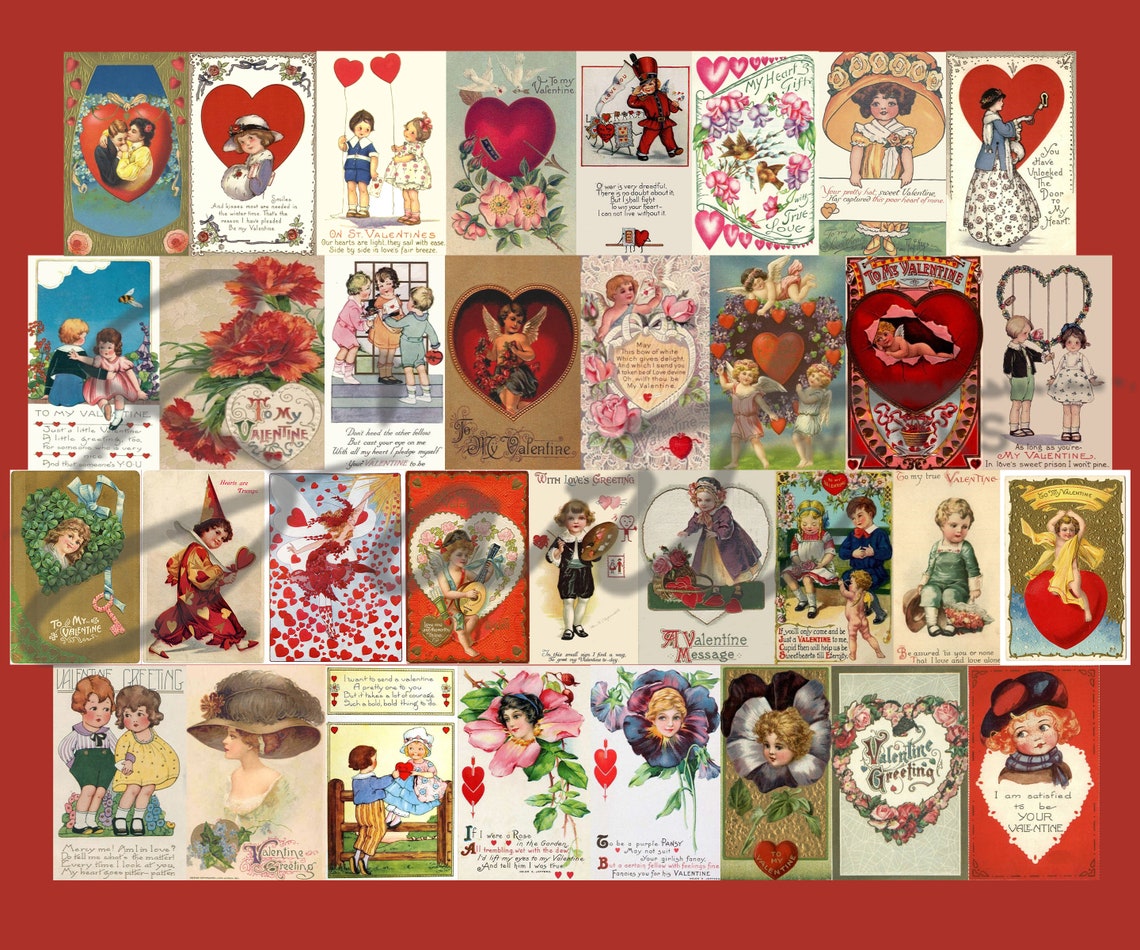 Vintage Valentine Card Images Digital Collage Sheet #6 for Altered Art