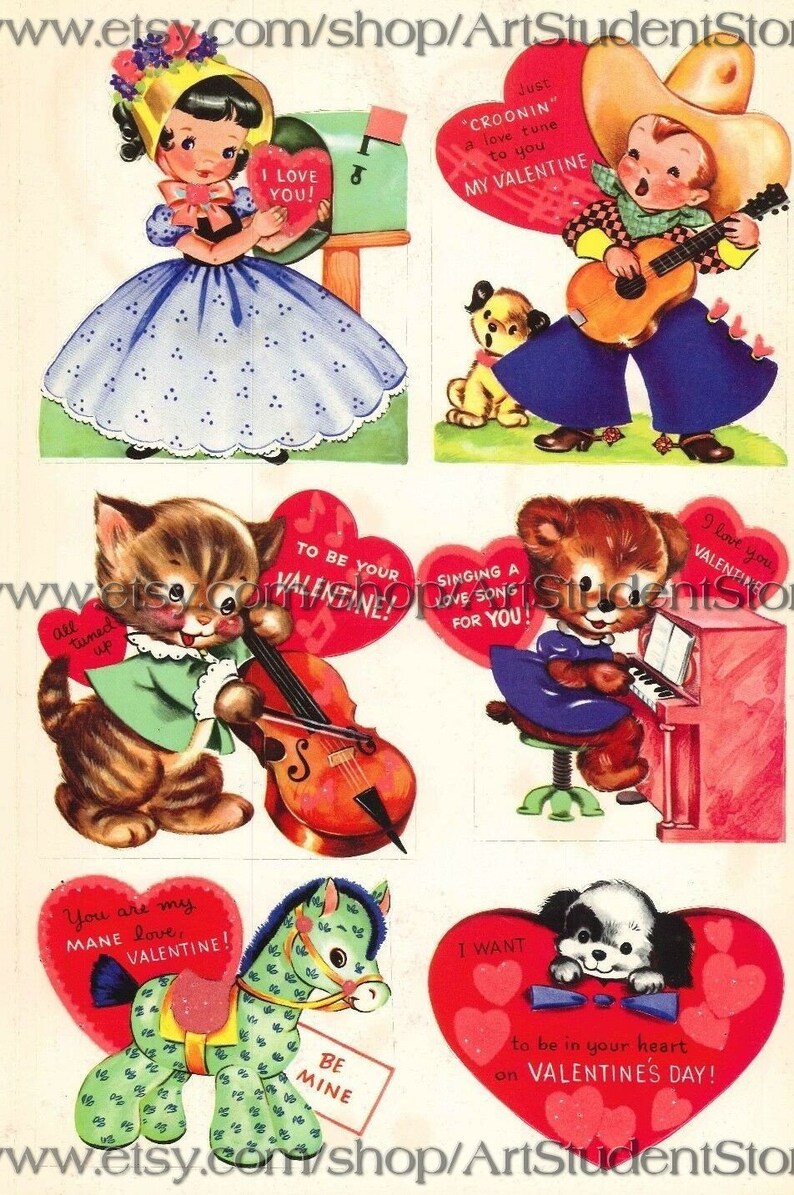 50 Vintage Printable Valentine Cards Retro 1962 Cute Kitsch Etsy Canada