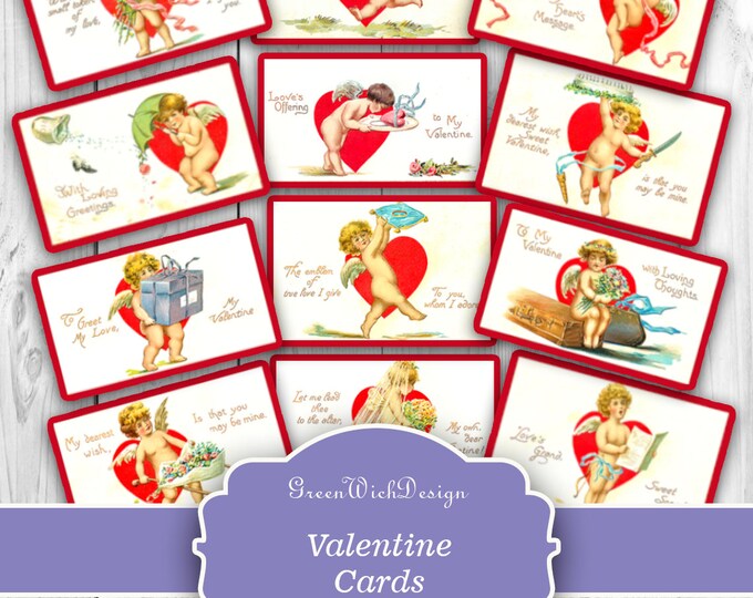 Victorian Valentine Cards Printable Vintage Cupid Angels Etsy