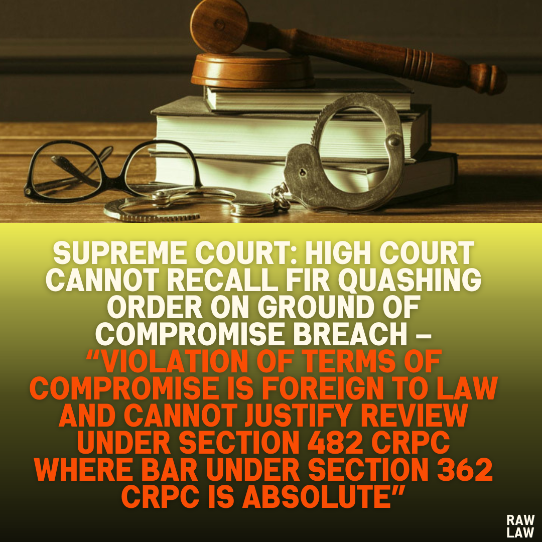 Supreme Court: High Court Cannot Recall FIR Quashing Order on Ground of