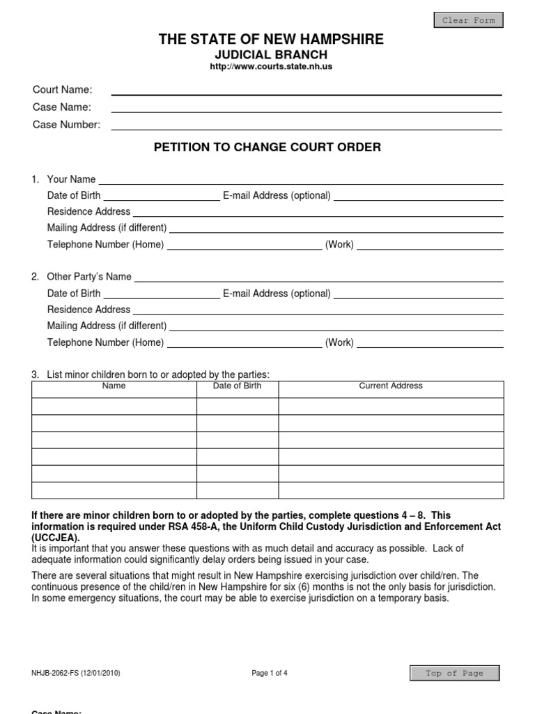Petition to Change Court Order Child Custody Contact (Law)