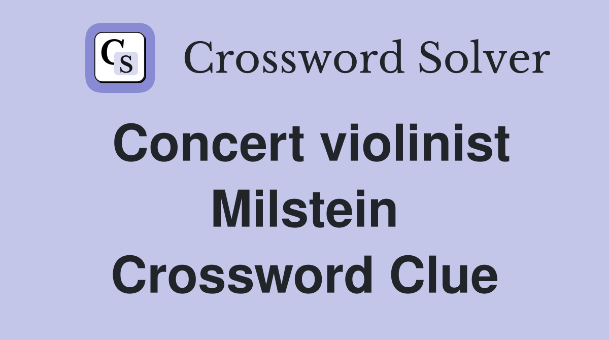 Concert violinist Milstein Crossword Clue Answers Crossword Solver