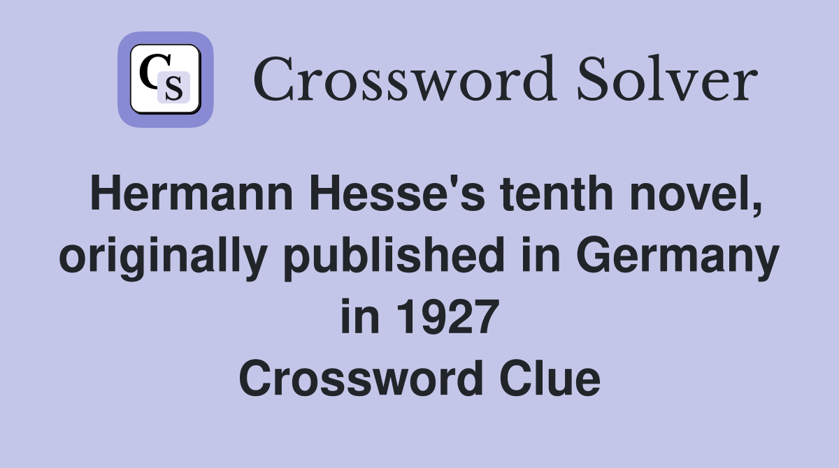 Hermann Hesse #39 s tenth novel originally published in Germany in 1927