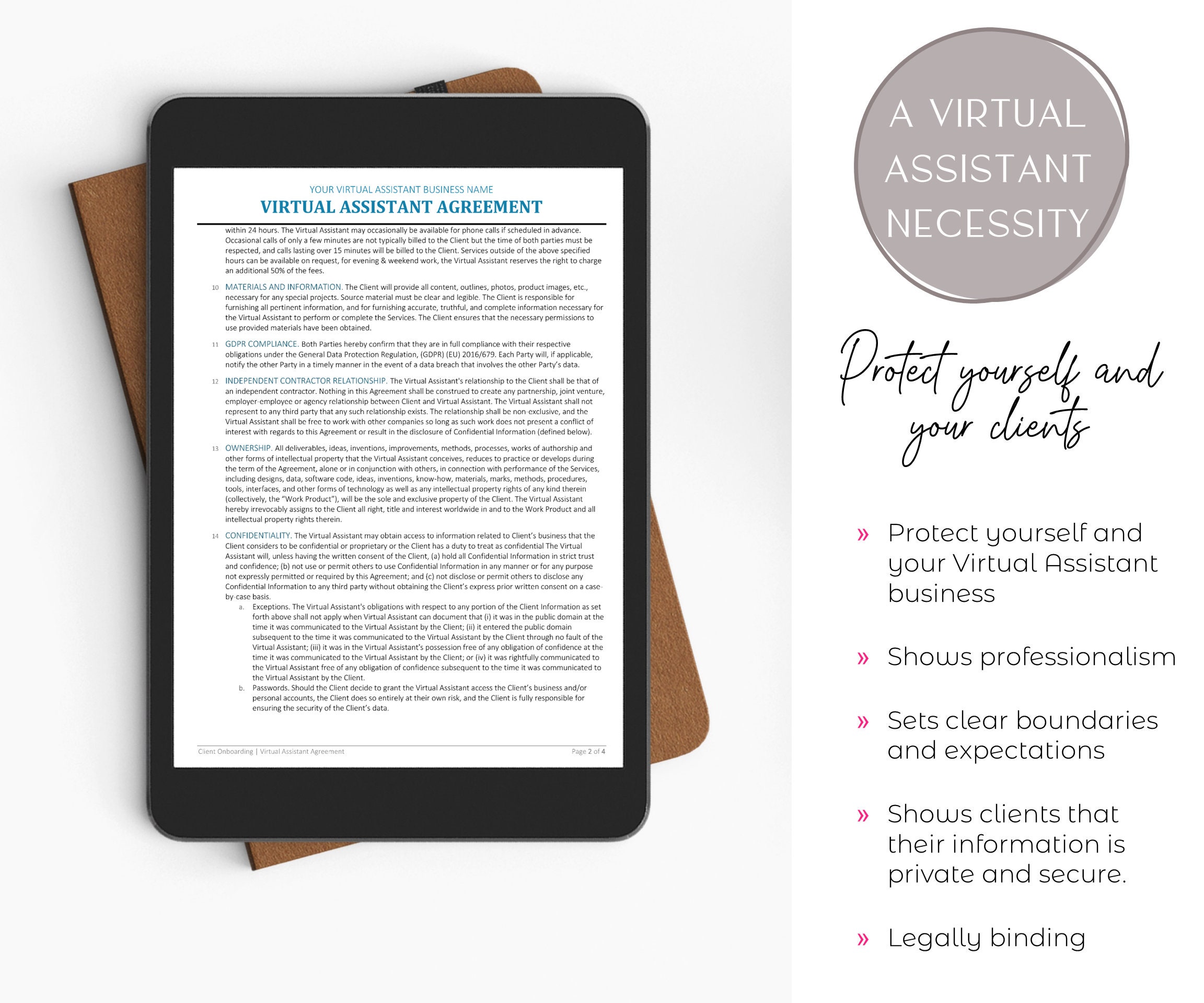 Virtual Assistant Agreement Template: Editable VA Client Contract
