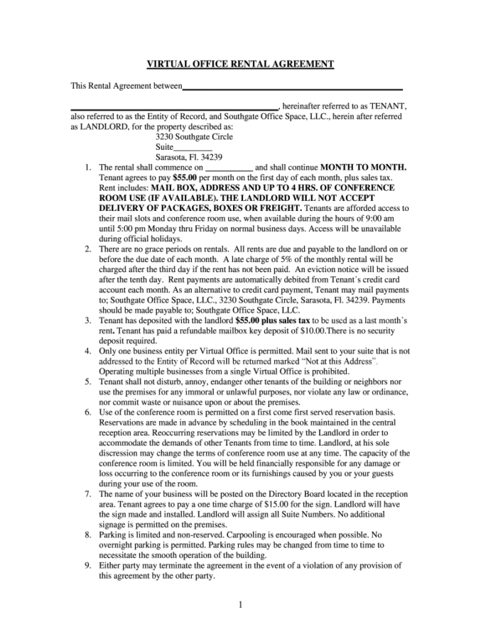 Virtual Office Lease Agreement Template Google Docs Word Apple