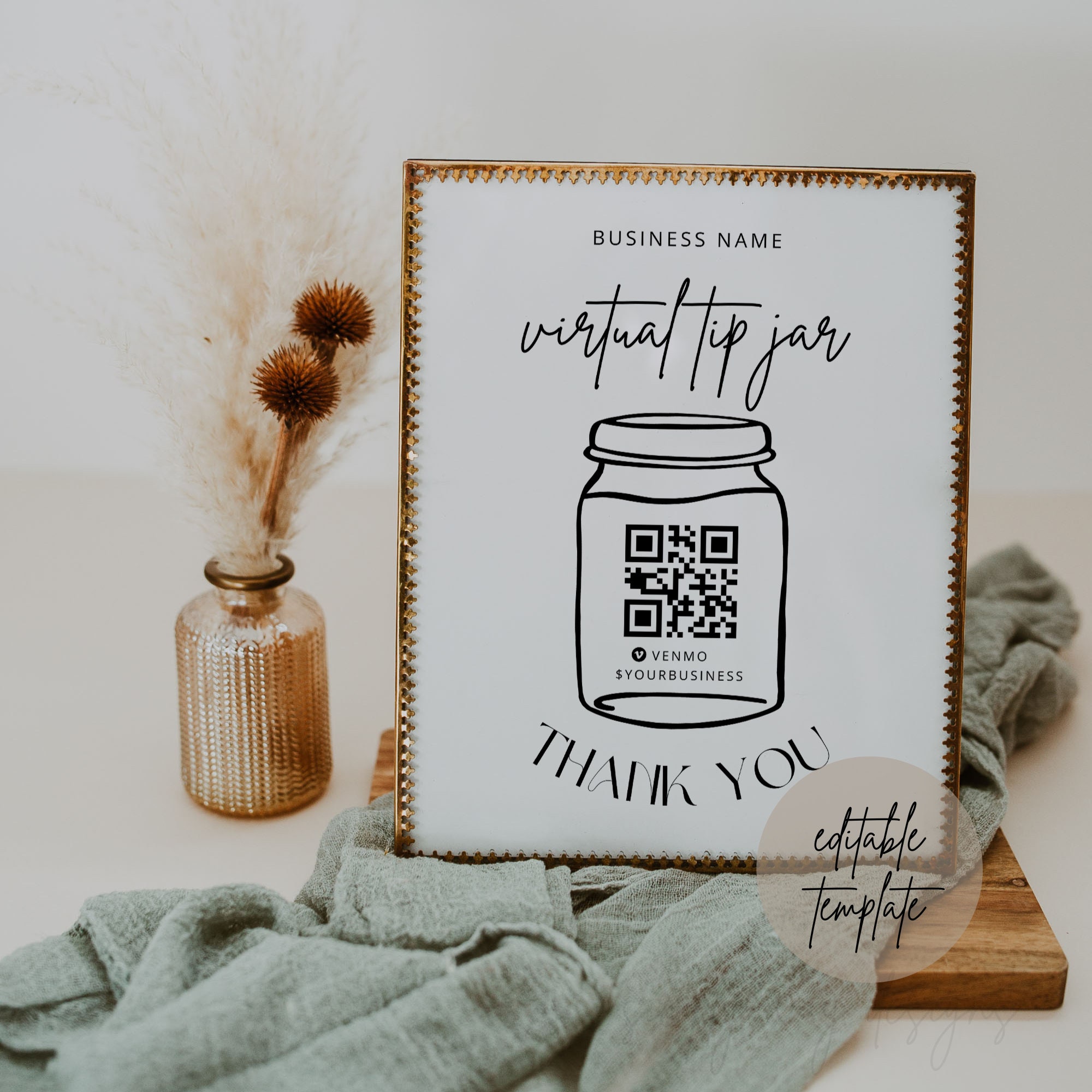 Editable Virtual Tip Jar Sign Template Tip Jar QR Code Sign Printable