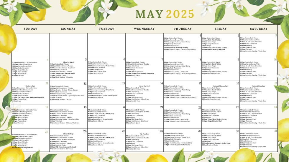 May 2025 Activities Calendar Village at Mill Creek an Assisted