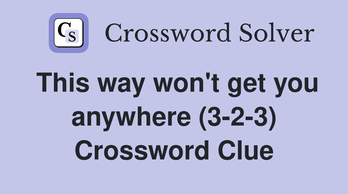 This way won #39 t get you anywhere (3 2 3) Crossword Clue Answers