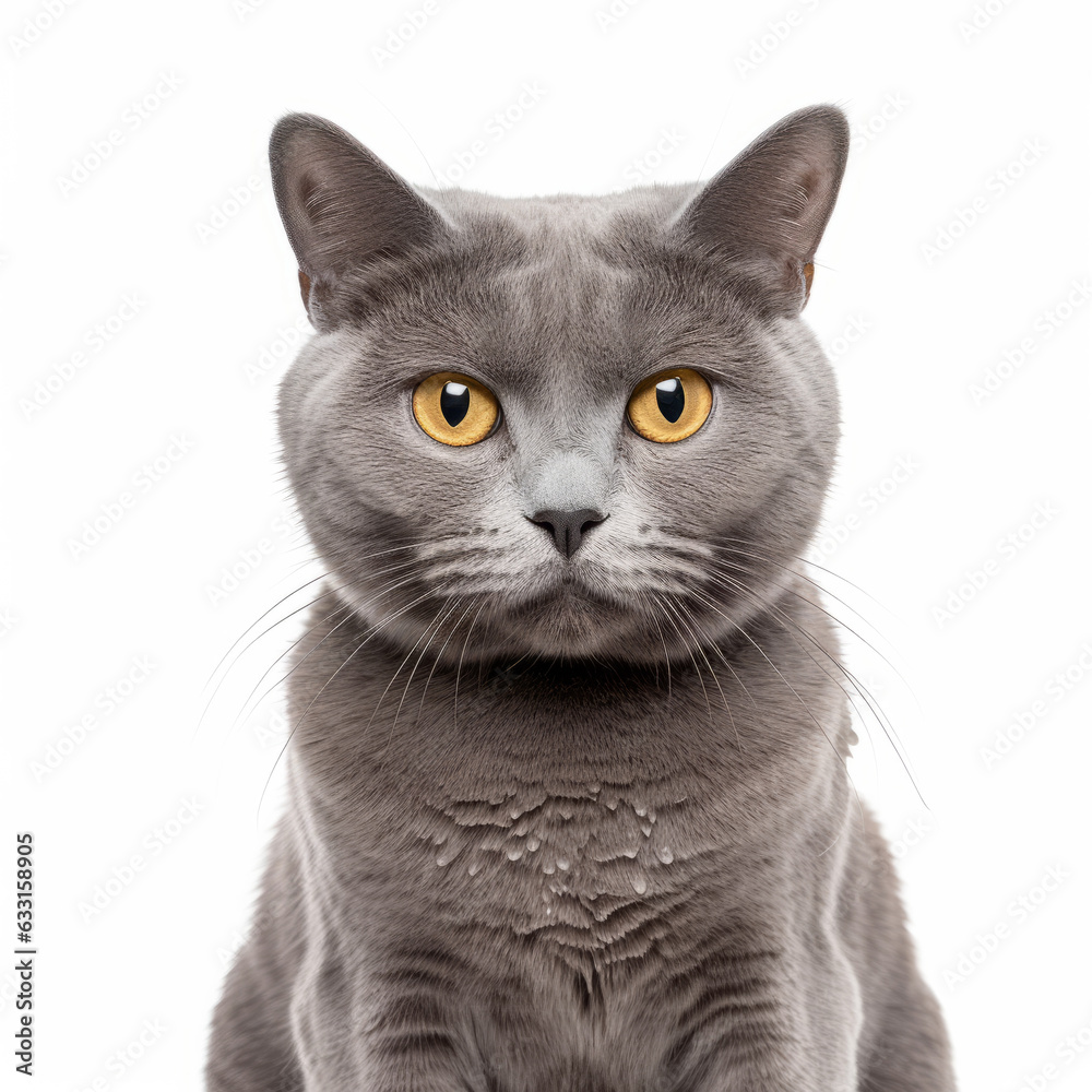 Visibly Sad Chartreux Cat with Isolated White Background Stock Photo
