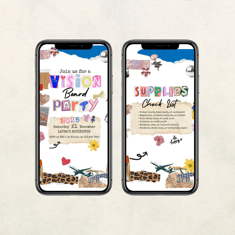 Vision Board Party Invite Editable Template New Years 2025 Vision Board