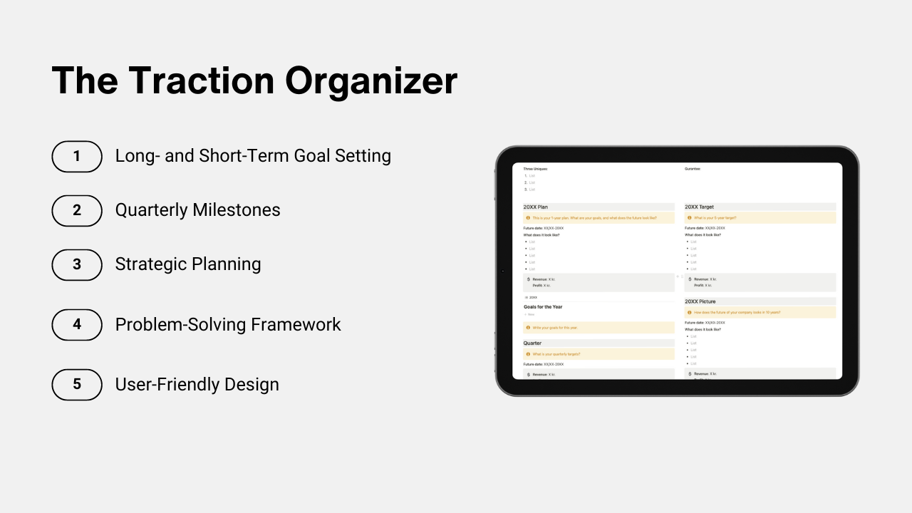 The Traction Organizer Ultimate Goal Setting Template for Small
