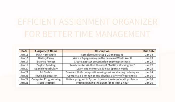 Enhance Time Management With An Effective Assignment Organizer Excel