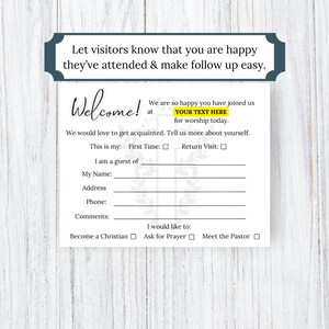 Printable Church Welcome Cards Visitor Cards Connection Cards DIY in
