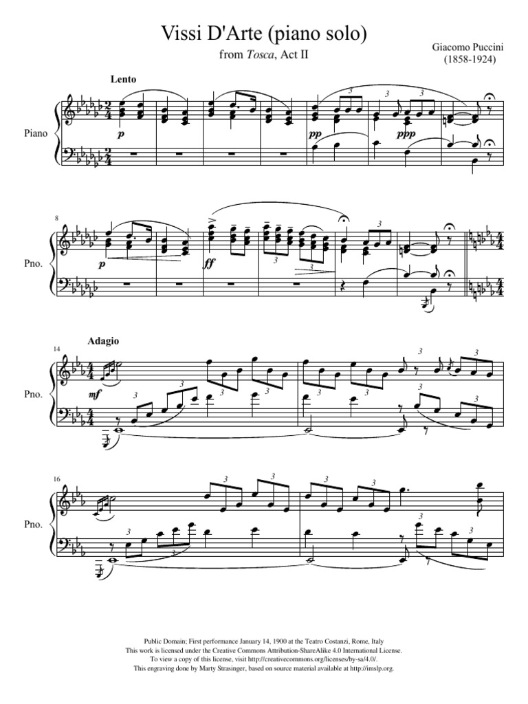 Tosca Vissi d #39 arte vissi d #39 amore (Intermediate/Advanced Level Solo