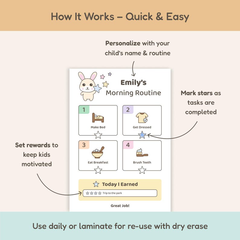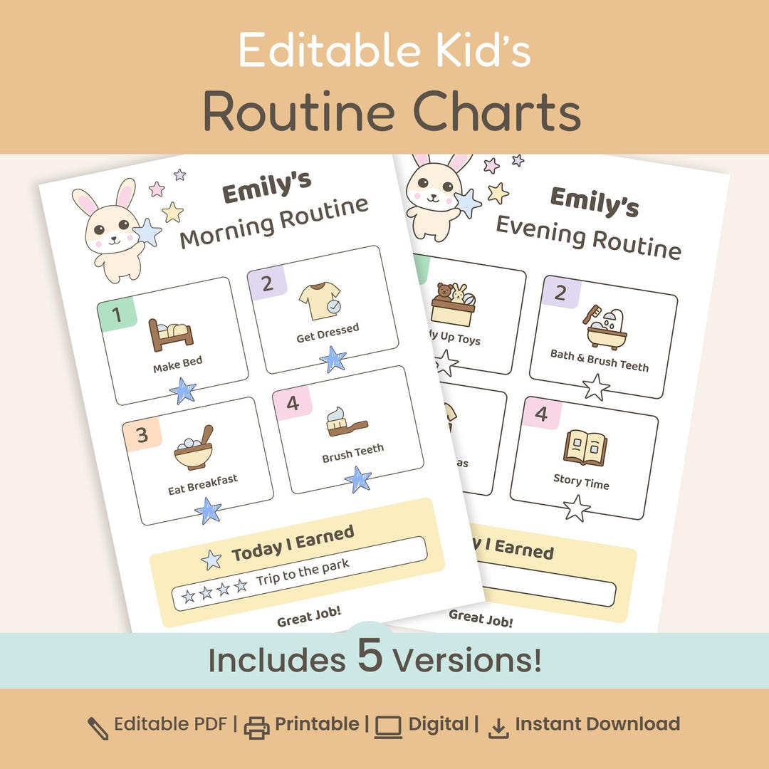 Editable Routine Chore Chart for Kids Morning Evening Daily Schedule