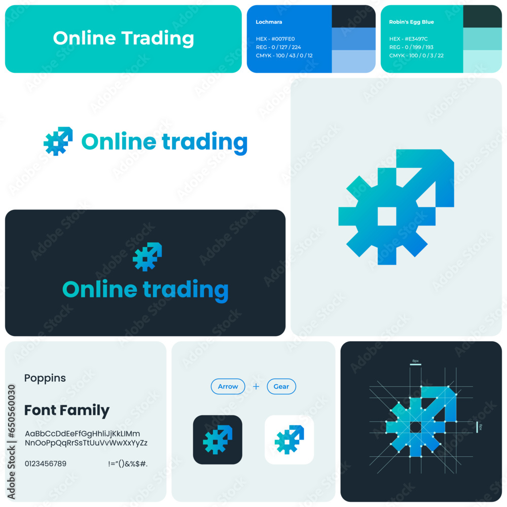 2D online trading gradient business logo with brand name Arrow and