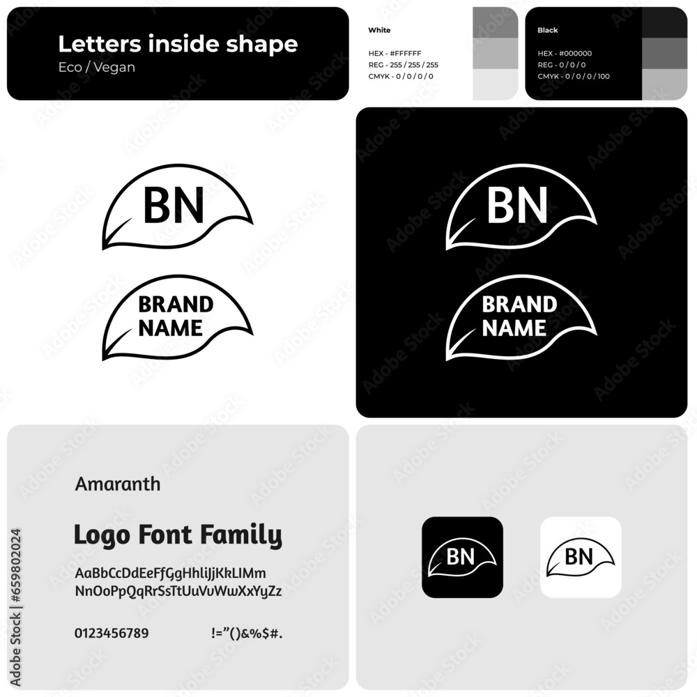 Eco vegan monochrome line logo with brand name Leaf icon Creative