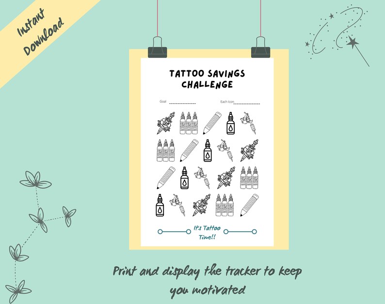 Tattoo Savings Challenge Printable Tattoo Fund New Ink Money Digital