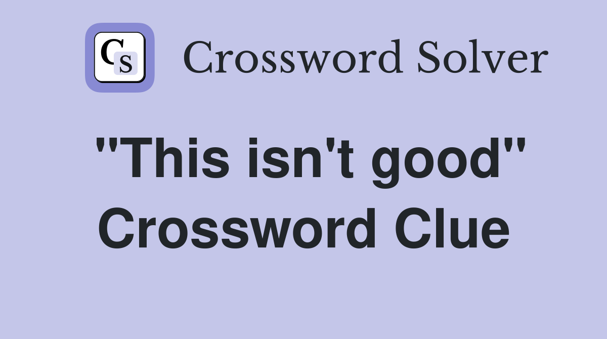 quot This isn #39 t good quot Crossword Clue Answers Crossword Solver