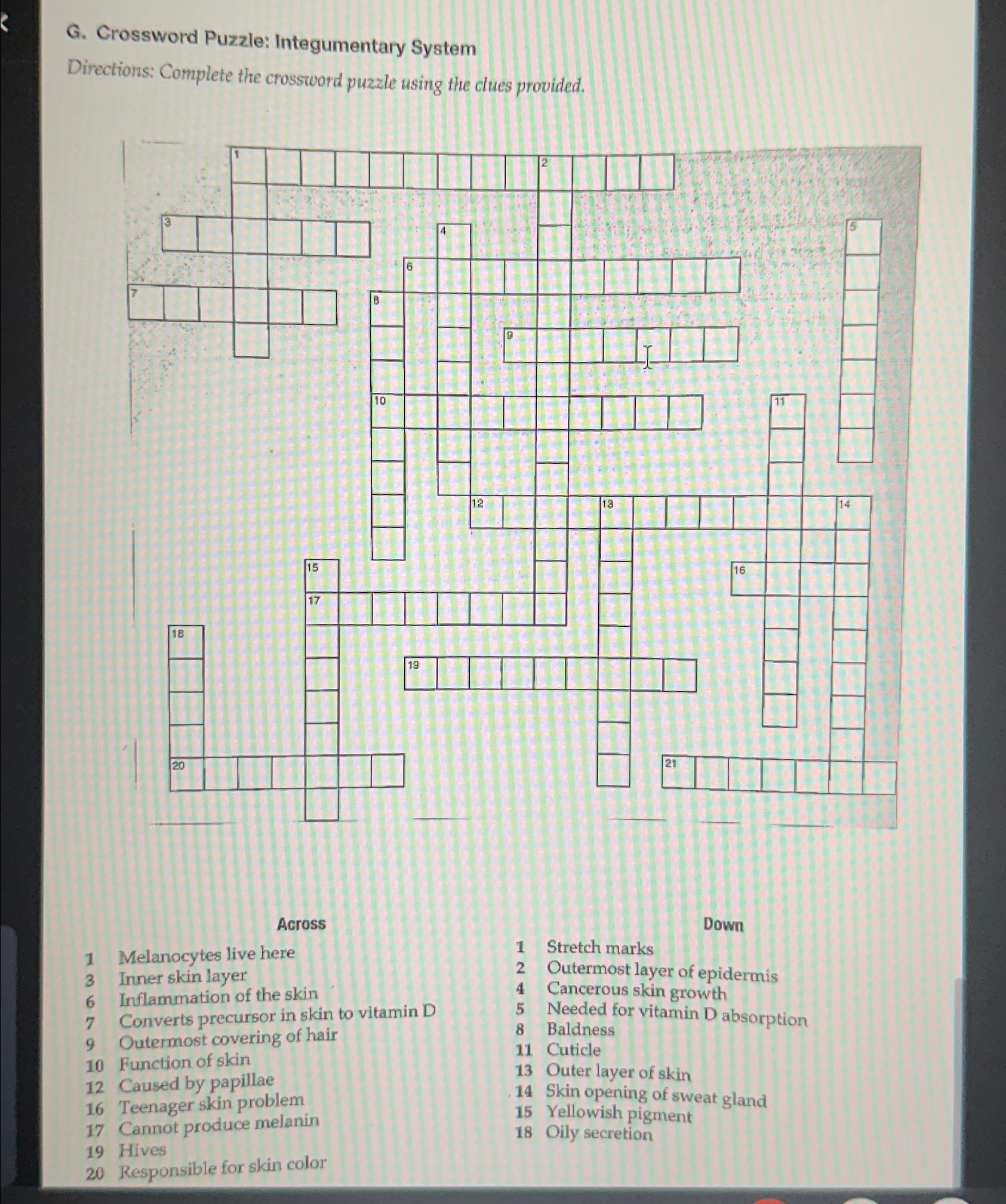 Solved G Crossword Puzzle: Integumentary SystemDirections: Chegg com