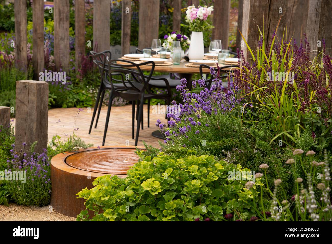 Eine permanente Grenze und ein runder Springbrunnen rund um den