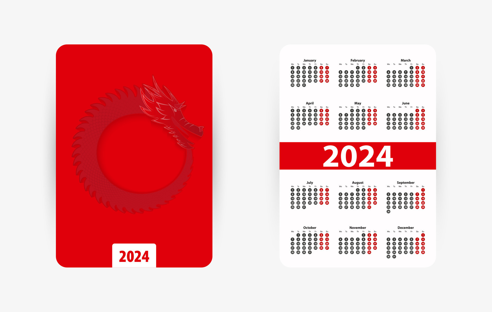 Pocket Vertical Calendar for 2024 year Calendar with Chinese Zodiac