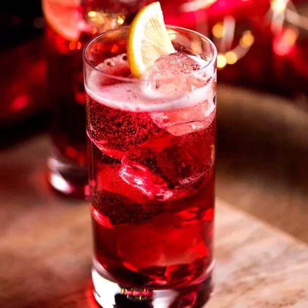 Premium Photo A Skyline Fizz cocktail in a highball glass vibrant red