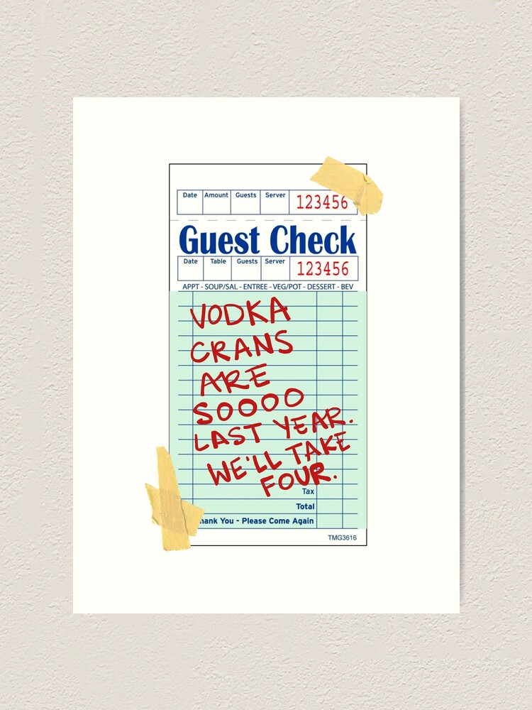 quot Vodka Cran Guest Check Art Alcohol Art Bar Cart Art Receipt Art