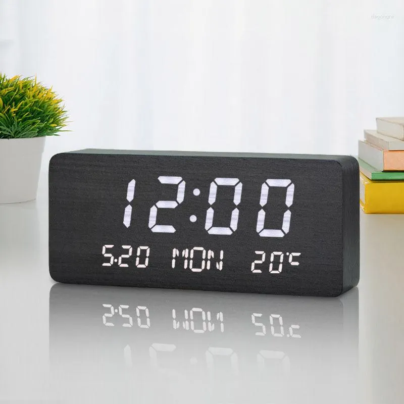 Mini Wooden LED Digital Clock Thermometer Voice Sound Activated