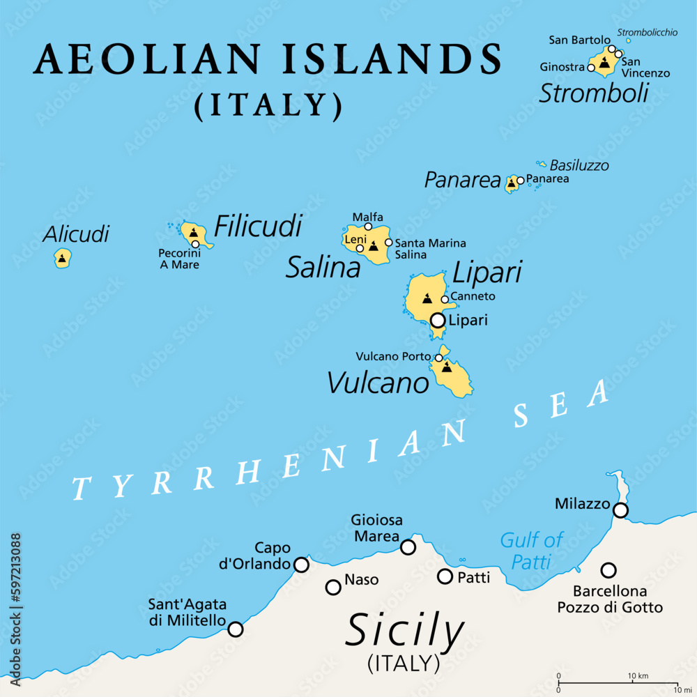 Aeolian Islands Italia political map Volcanic archipelago in the