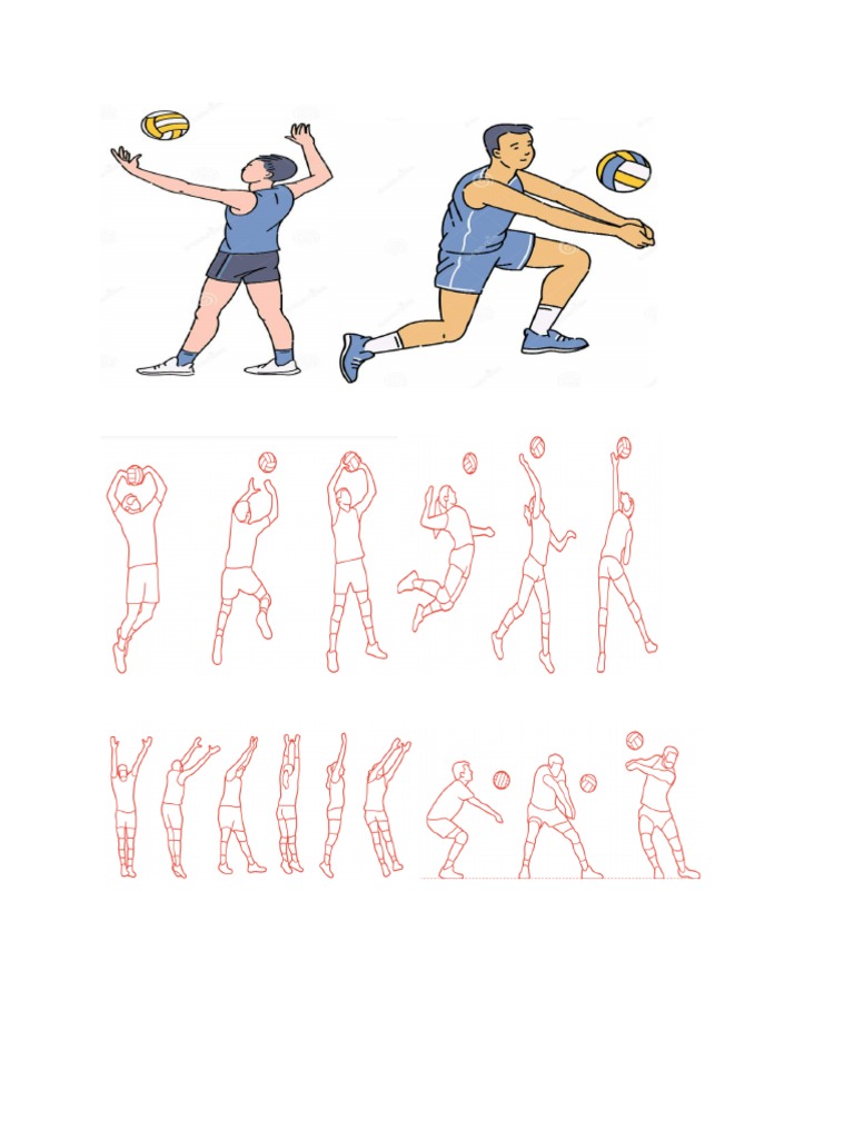 Human Figures Jumping And Playing Volleyball Handball Cartoon Sketch