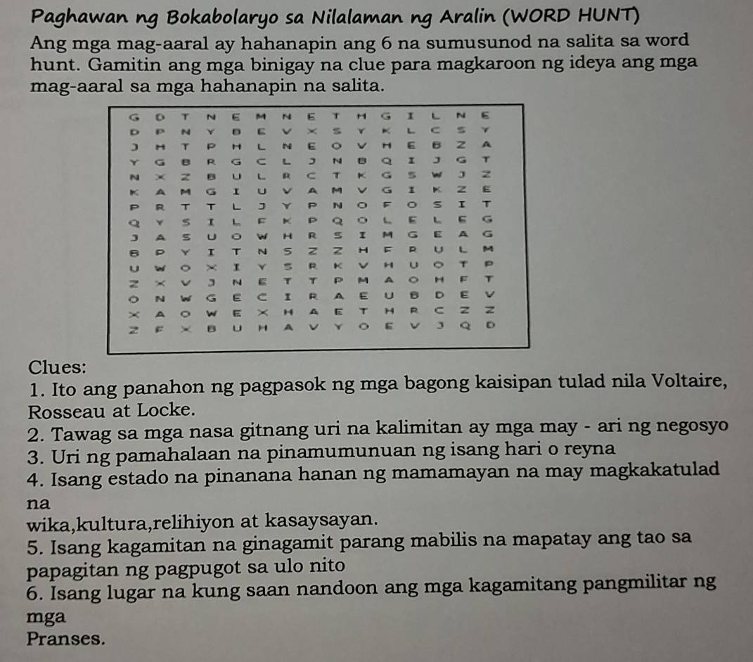 Solved: Paghawan ng Bokabolaryo sa Nilalaman ng Aralin (WORD HUNT) Ang