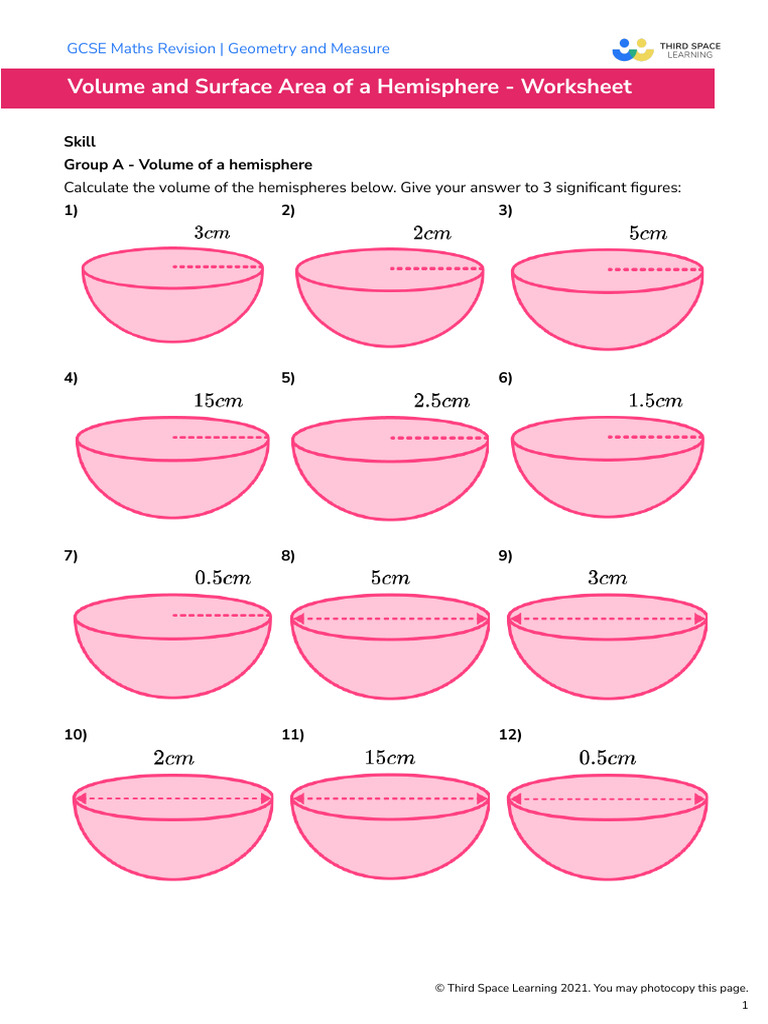 Third Space Learning Volume and Surface Area of A Hemisphere GCSE