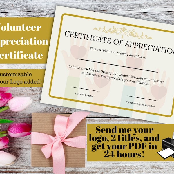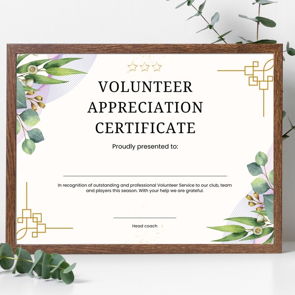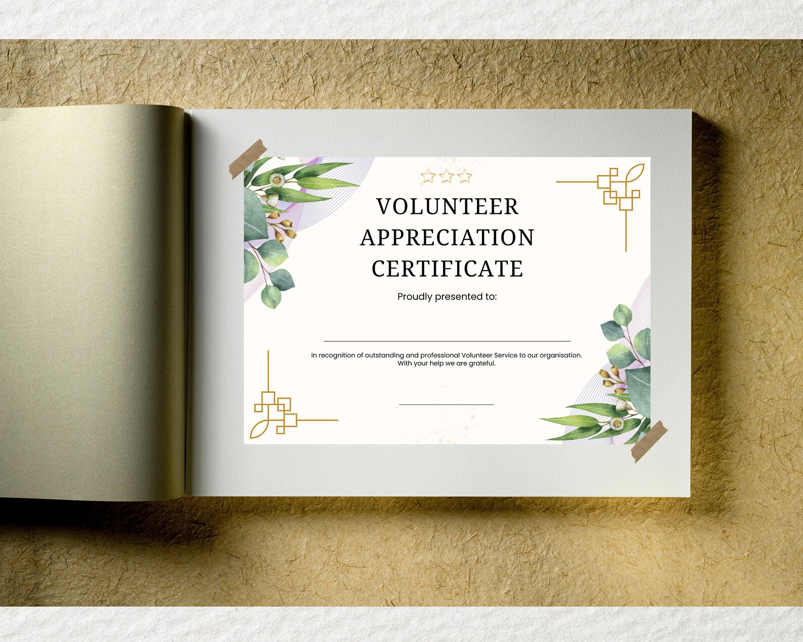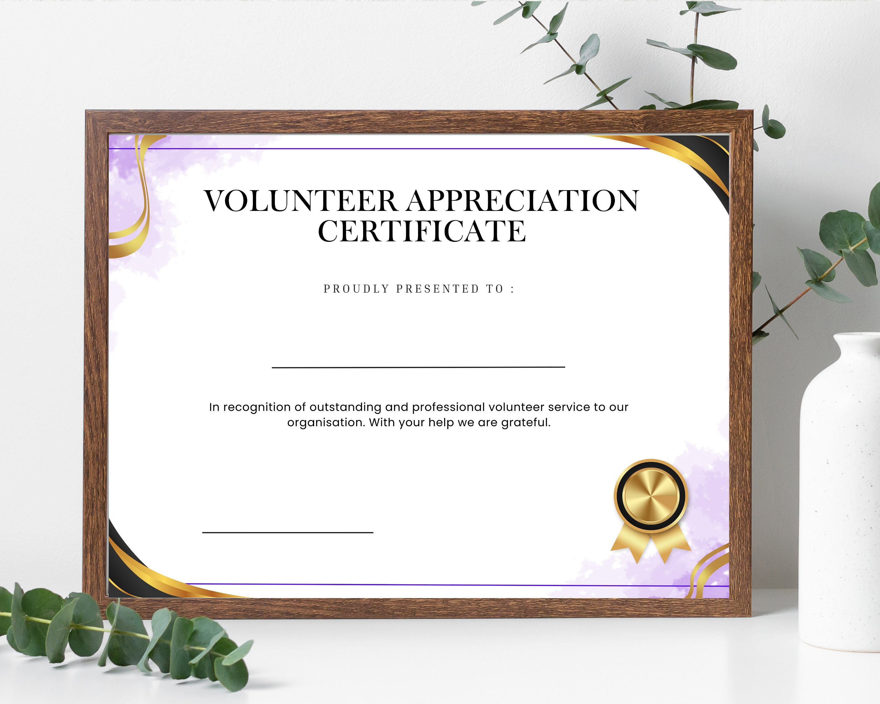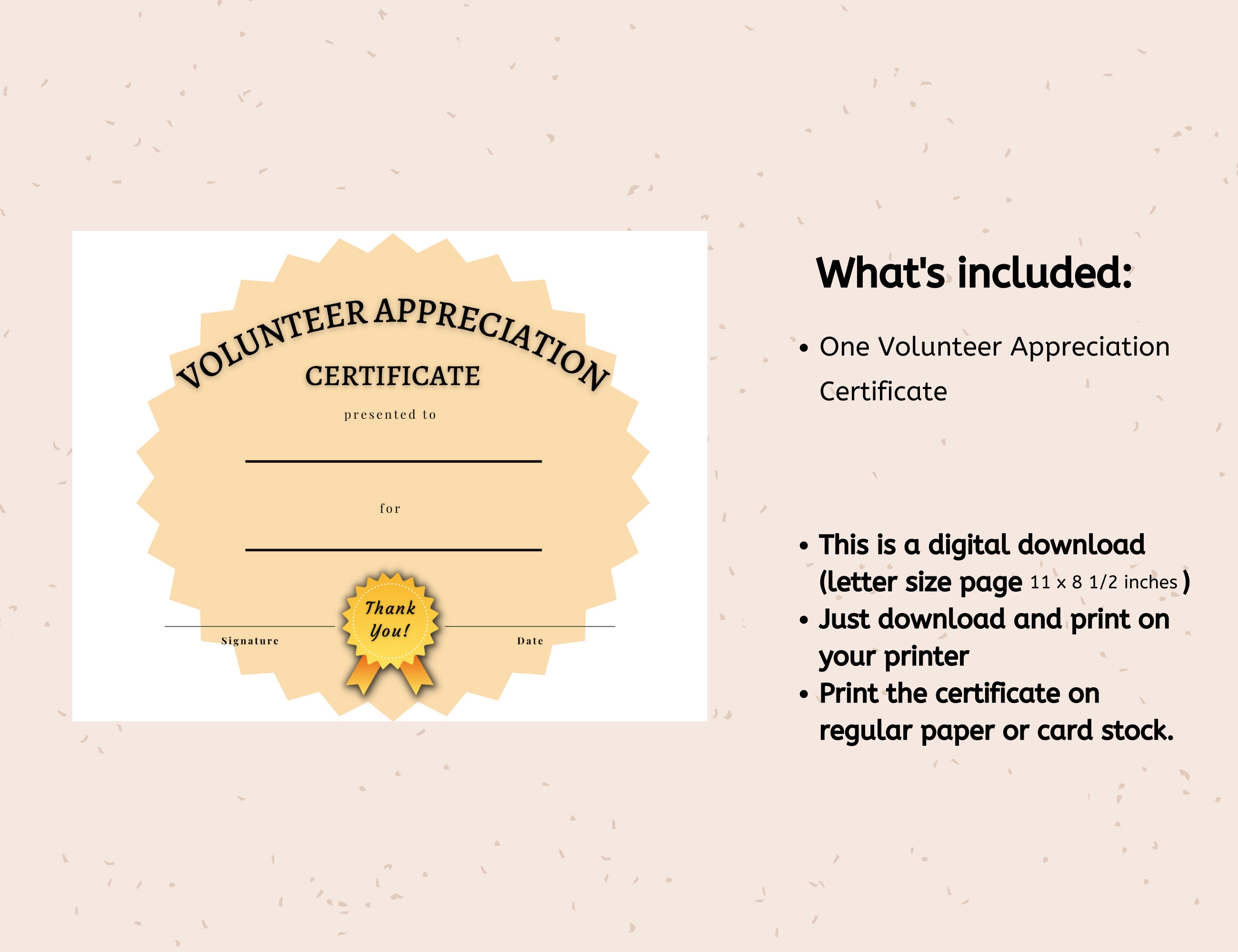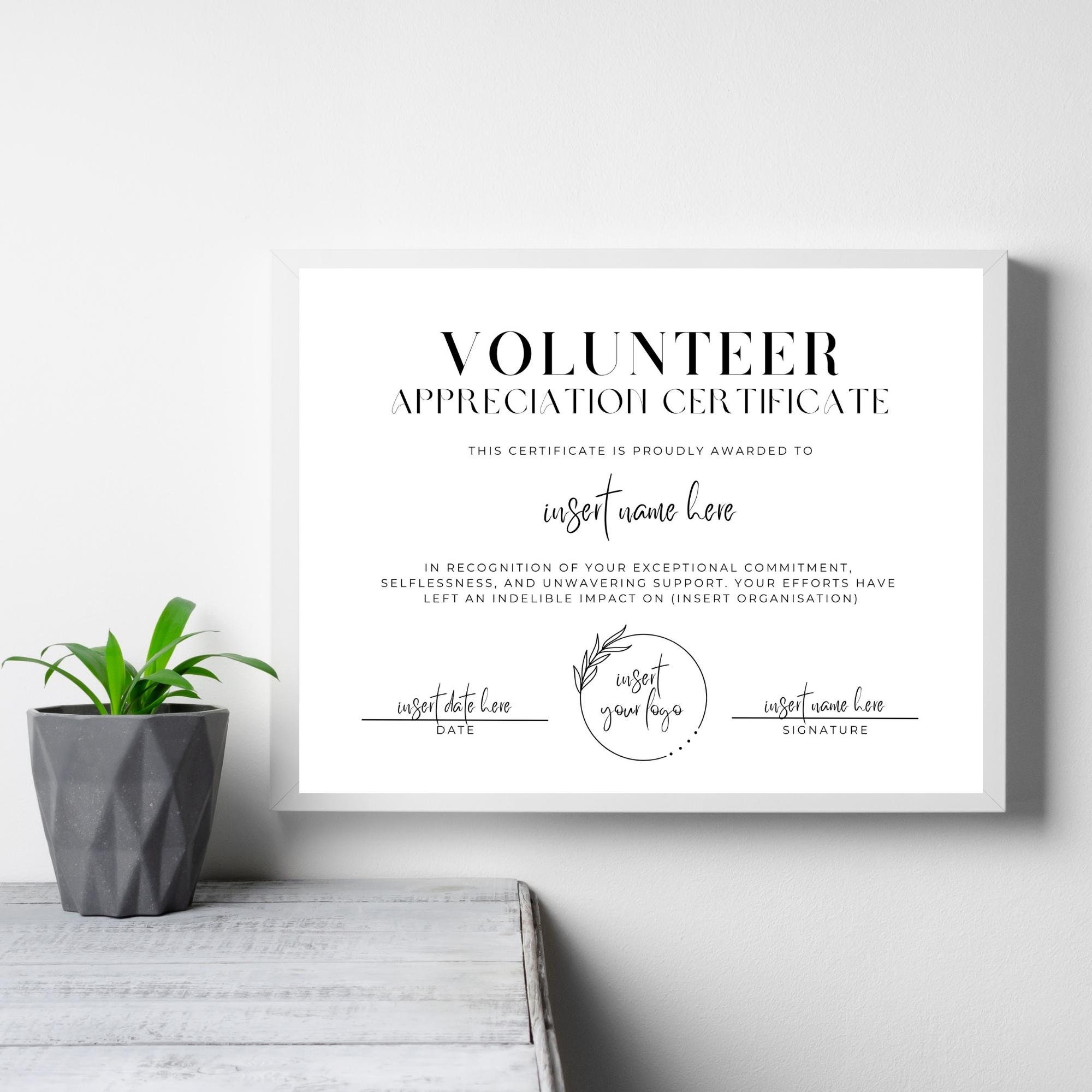 Printable Certificate of Appreciation for Volunteering INSTANT