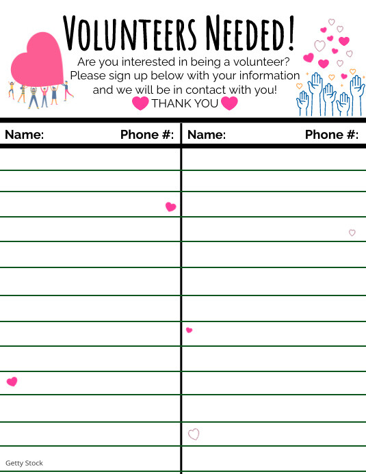 Free Printable Volunteer Sign Up Sheet Templates · InkPx