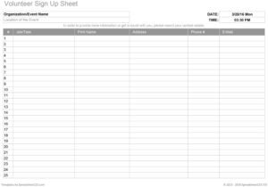 Volunteer Sign Up Sheet Template in Excel Google Sheets Download
