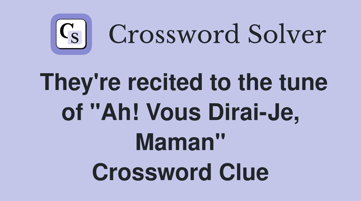 They #39 re recited to the tune of quot Ah Vous Dirai Je Maman quot Crossword