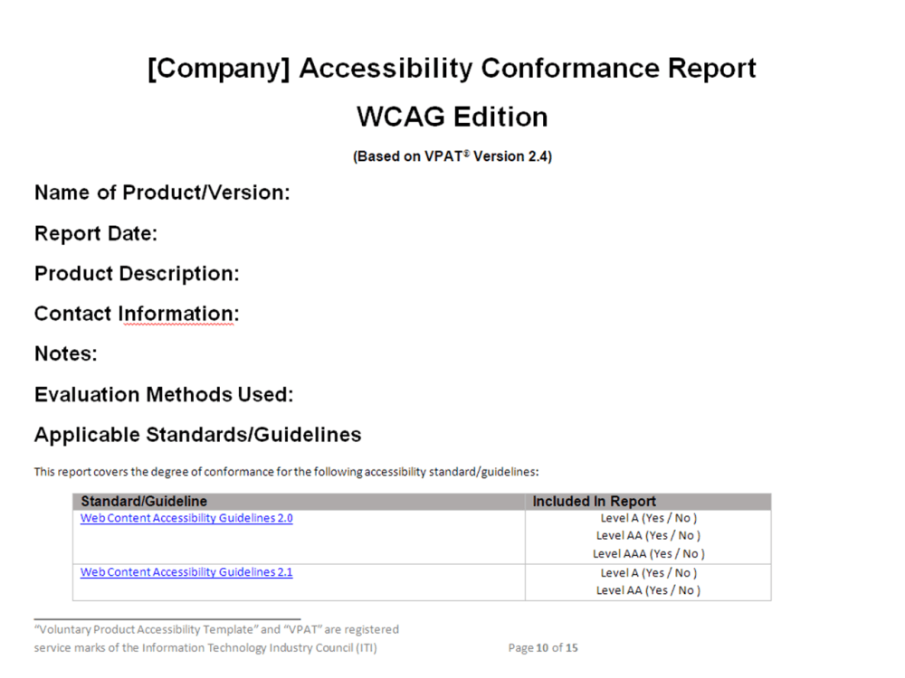 A VPAT WCAG quot Voluntary Product Accessibility Template quot for your
