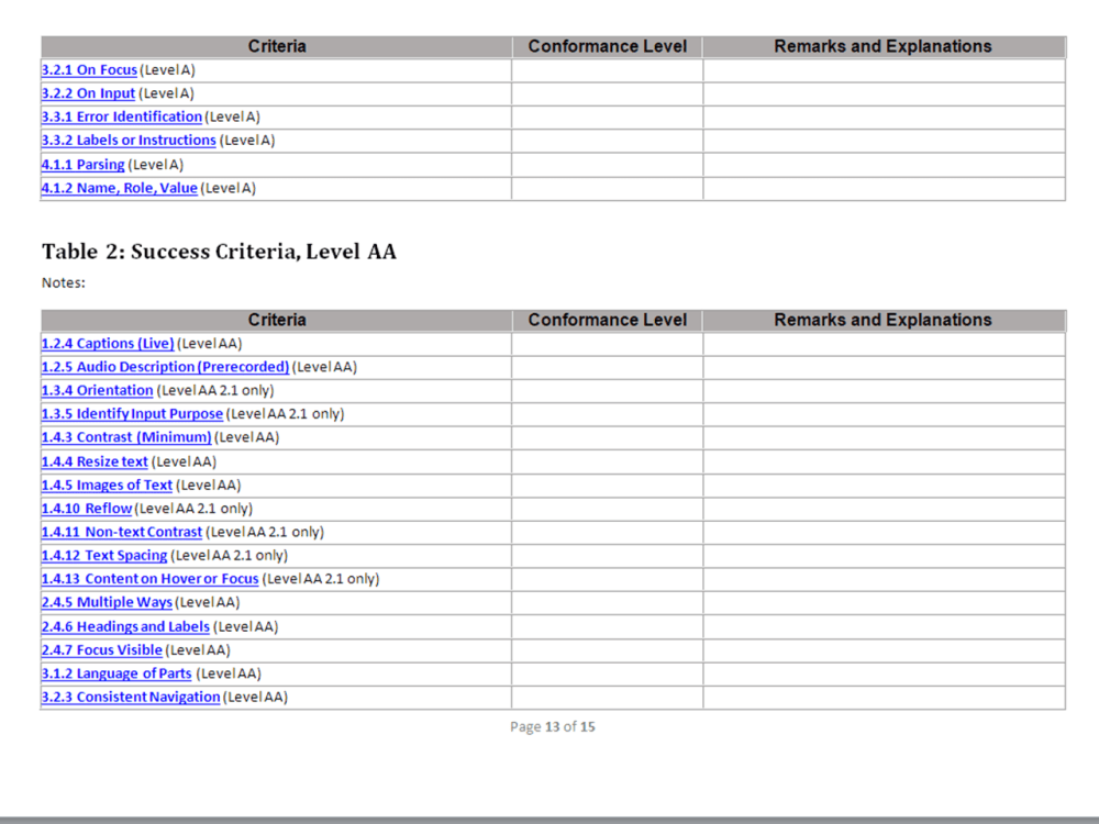 WCAG 2 0 VPAT Blank Template Download Free PDF Html Html Element