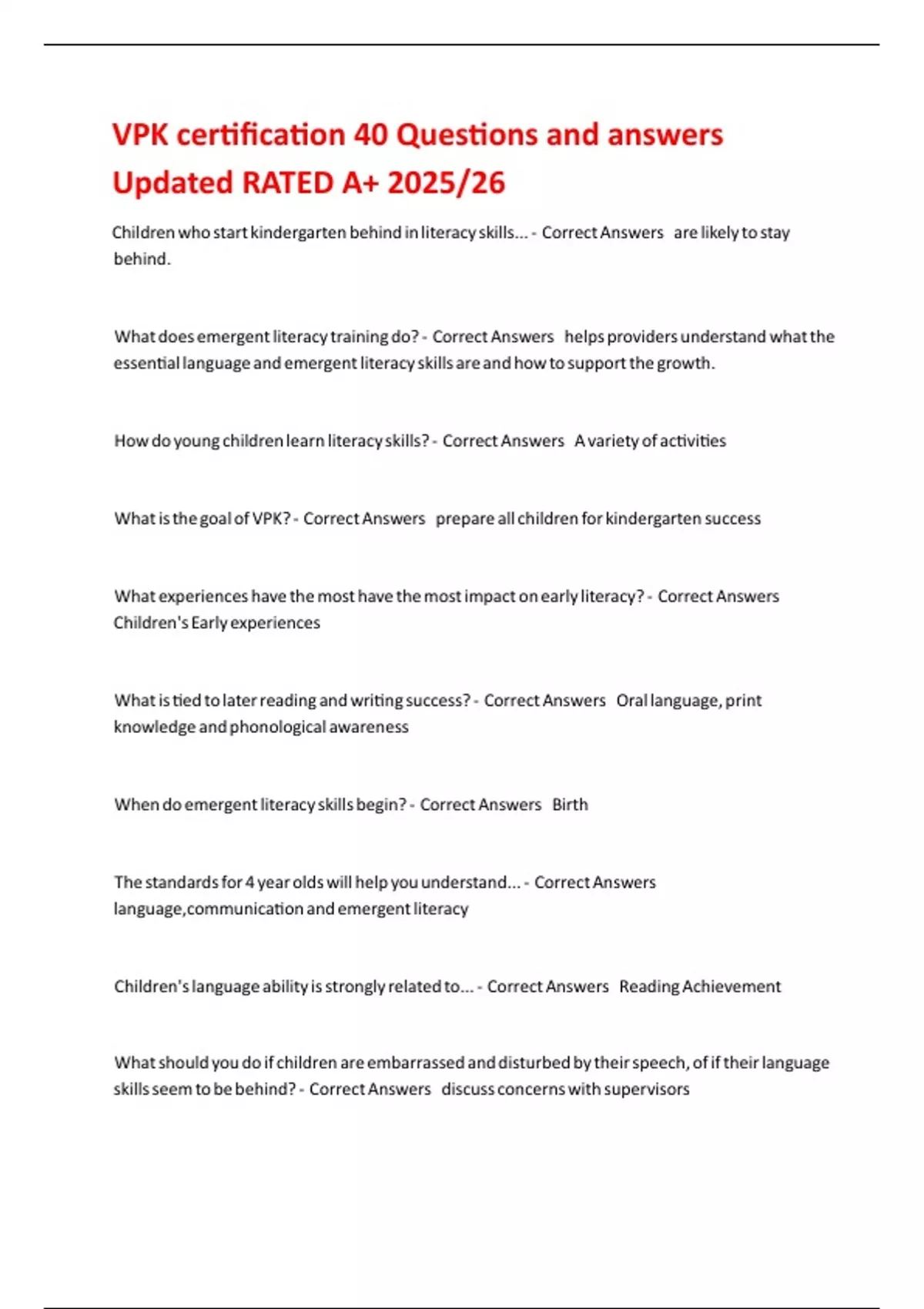 VPK certification 40 Questions and answers Updated RATED A 2025/26