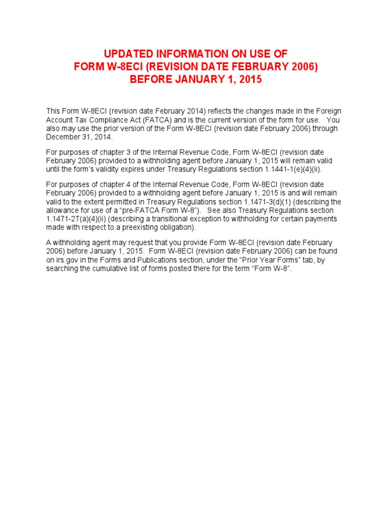 Fillable Online Form W 8 ECI (Rev February 2014) Library Fax Email