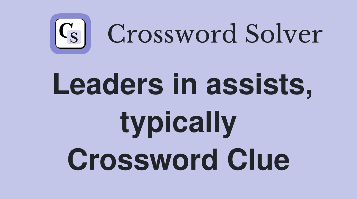 Leaders in assists typically Crossword Clue Answers Crossword Solver