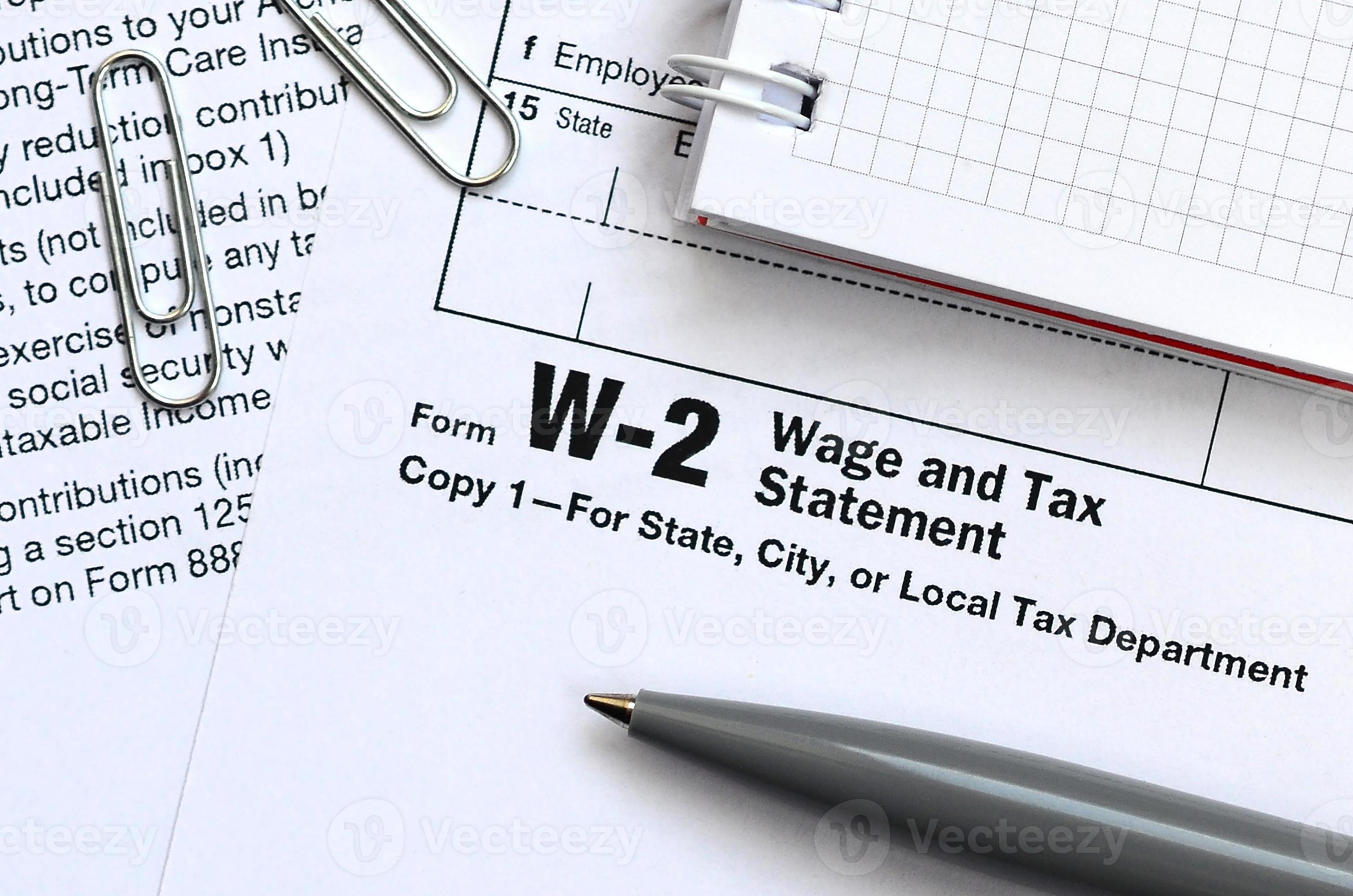 el bolígrafo y el cuaderno en el formulario de impuestos w 2