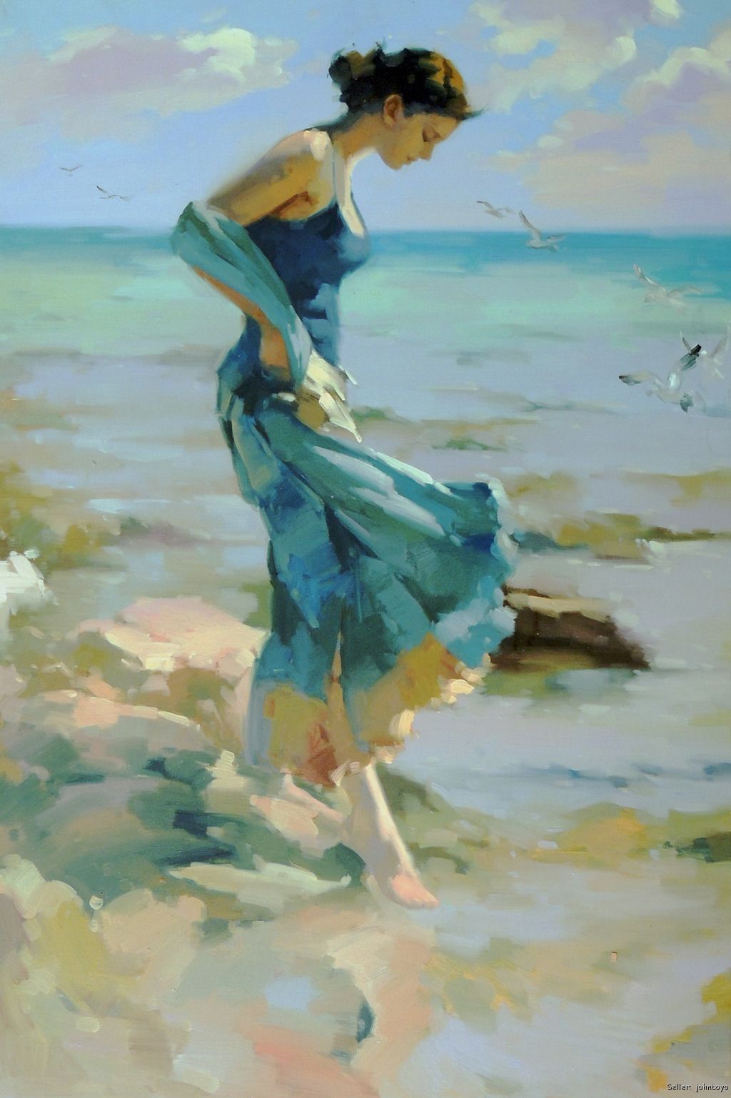 Pintura mulher na praia Figure painting Artist Art painting