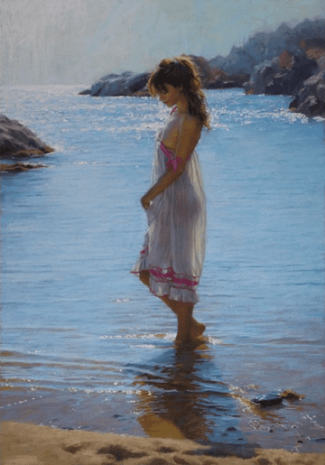 Vintage Portrait Oil Paintings Painting Canvas Girl Walking on Beach