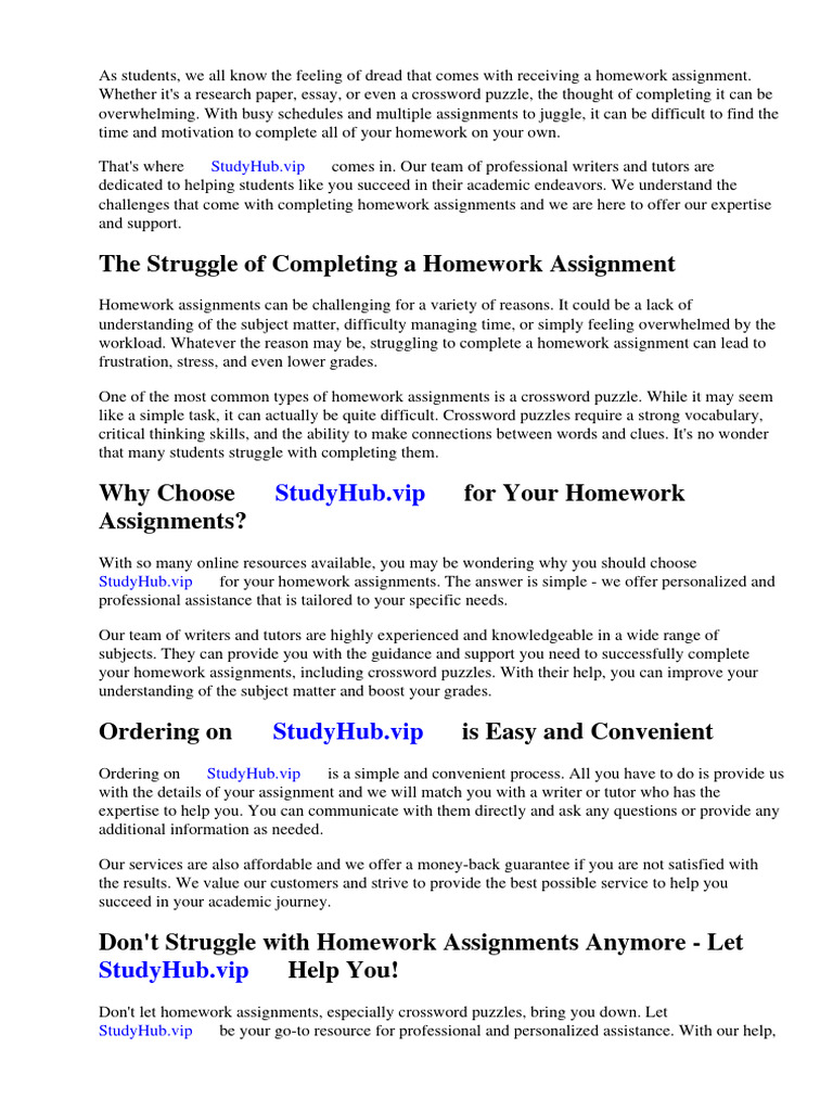 Homework Assignment Crossword Puzzle PDF Crossword Homework