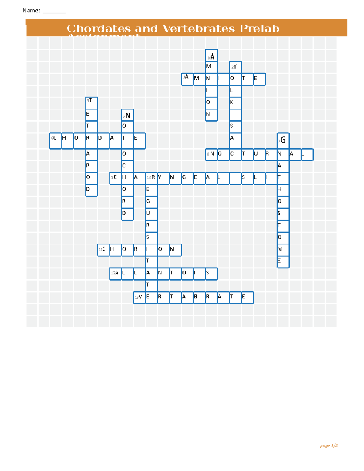 Crossword Chordates Name: Chordates and Vertebrates Prelab