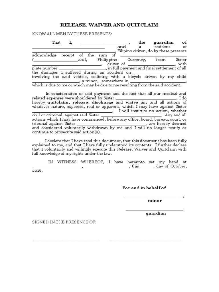 Release Waiver and Quitclaim PDF